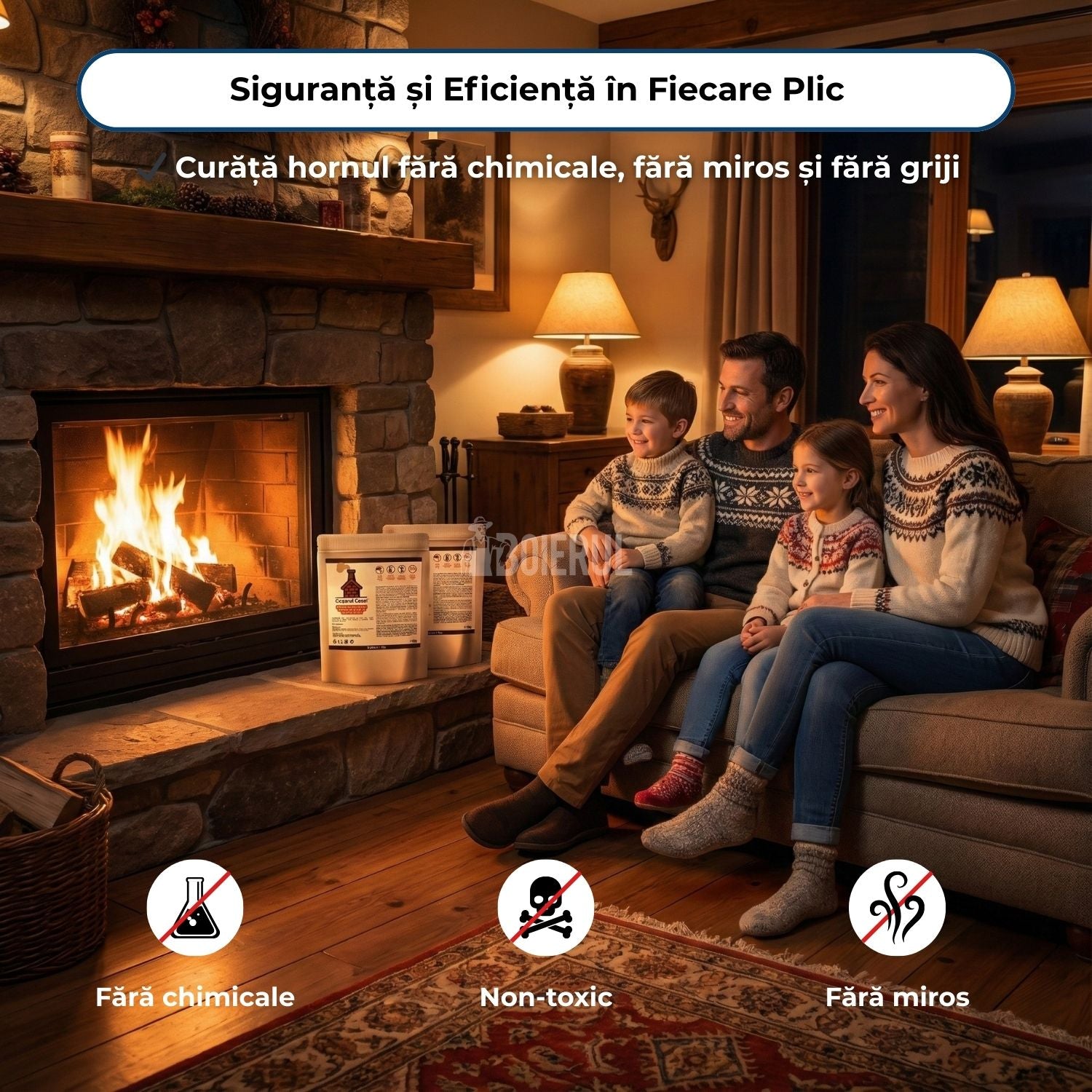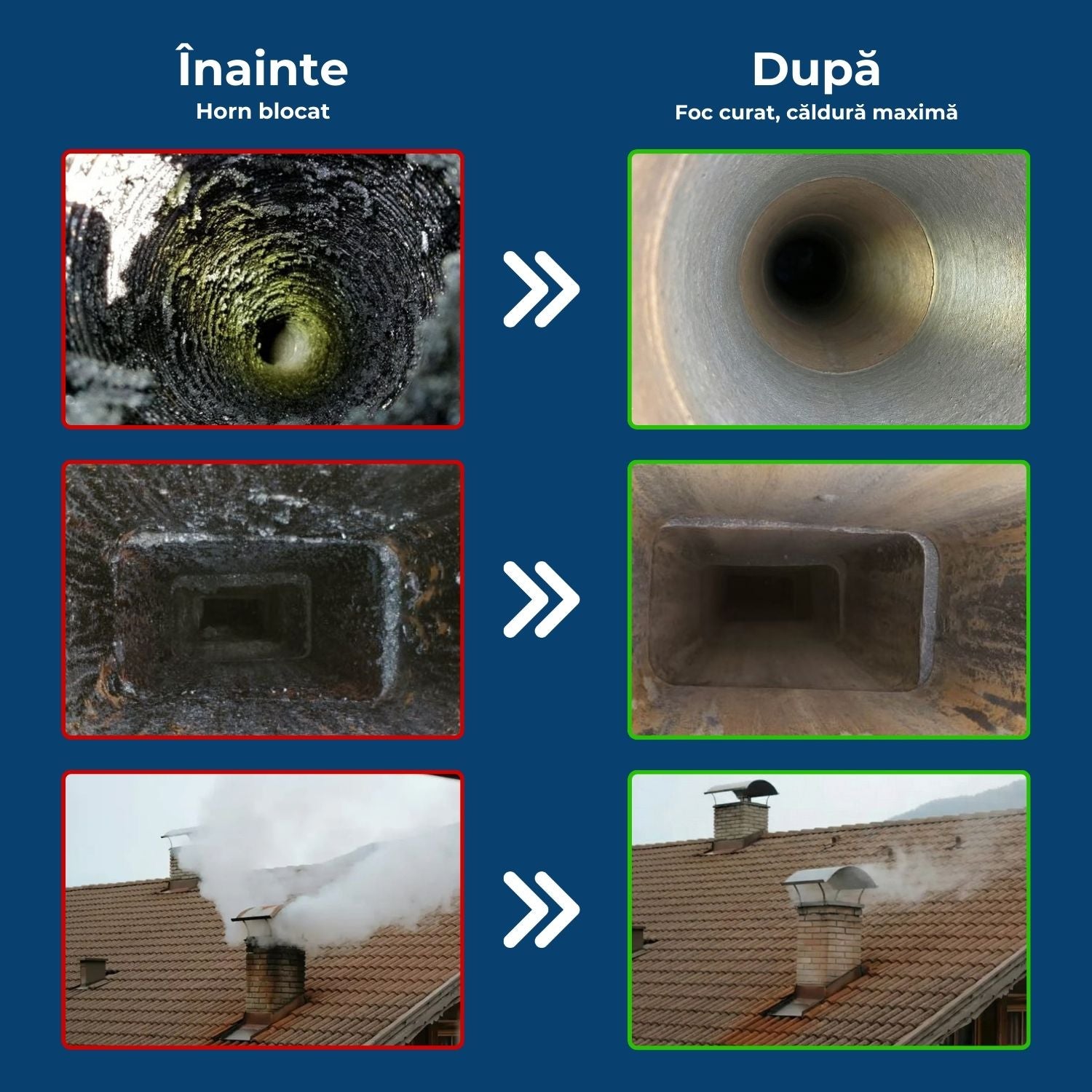 Utilizată regulat, pulberea menține hornul “deschis” și în formă optimă pe tot parcursul iernii.