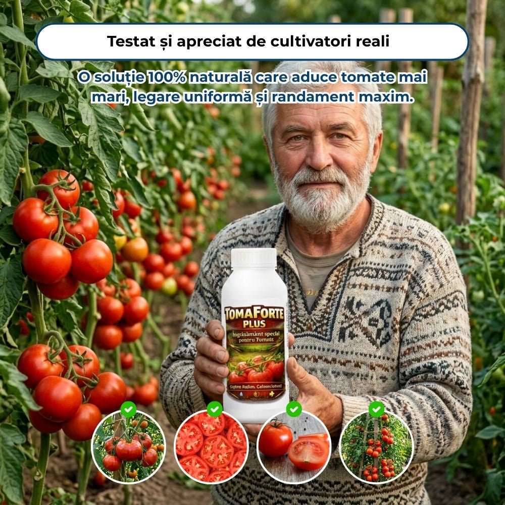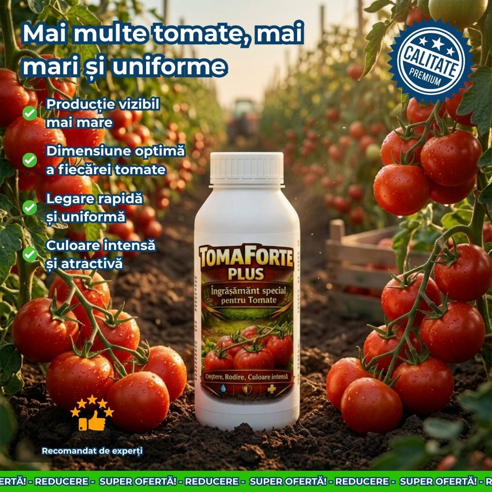 Comandă acum TomaForte PLUS și obține producție maximă și tomate de dimensiuni superioare! 🍅